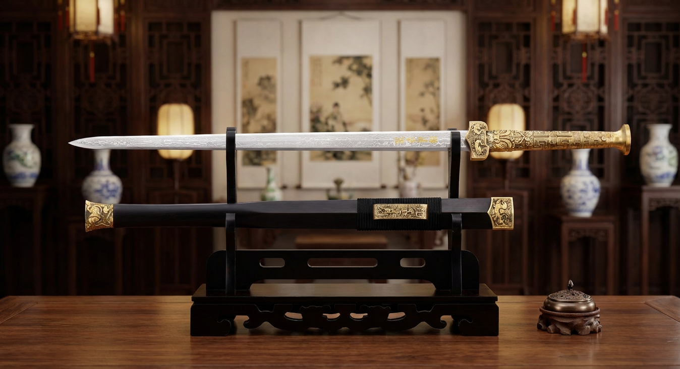 张叶胜大师以“君临”为名,正是抓住了汉剑风骨中最核心的王者之气。汉代,是中国历史上一个充满自信与开拓精神的朝代,那时的剑,承载的是“犯我强汉者,虽远必诛”的赫赫国威。这柄“君临汉剑”,继承了那份气魄。千层钢的反复锻打,如同君主历经无数考验,方才铸就坚不可摧的意志;黑檀木剑鞘的温润坚硬,恰如君主外示仁德、内藏锋芒的统治之道;龙纹的描金,更是将那份至高无上的皇权图腾,烙印于剑身之上。
