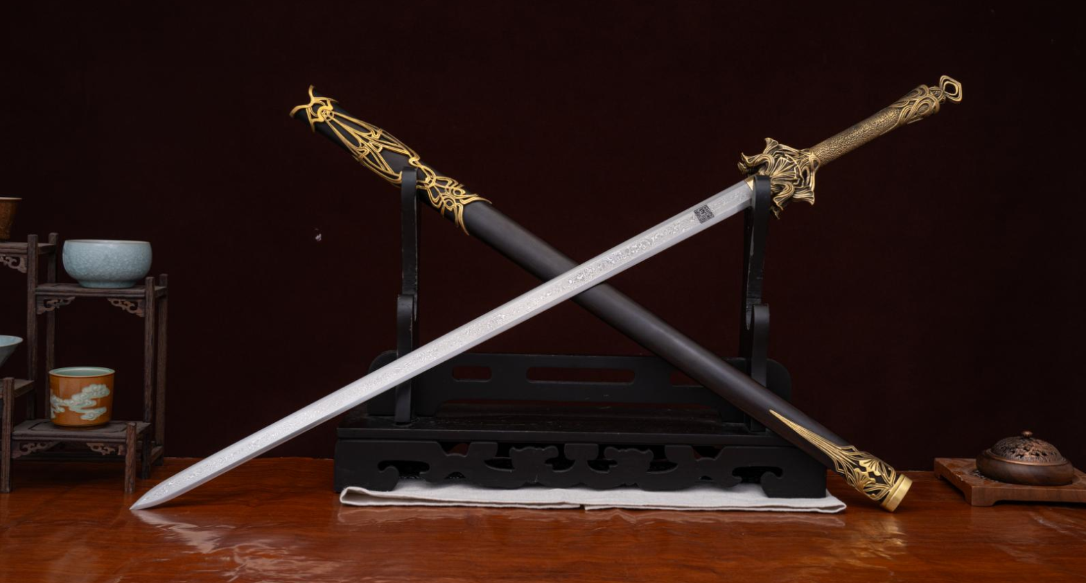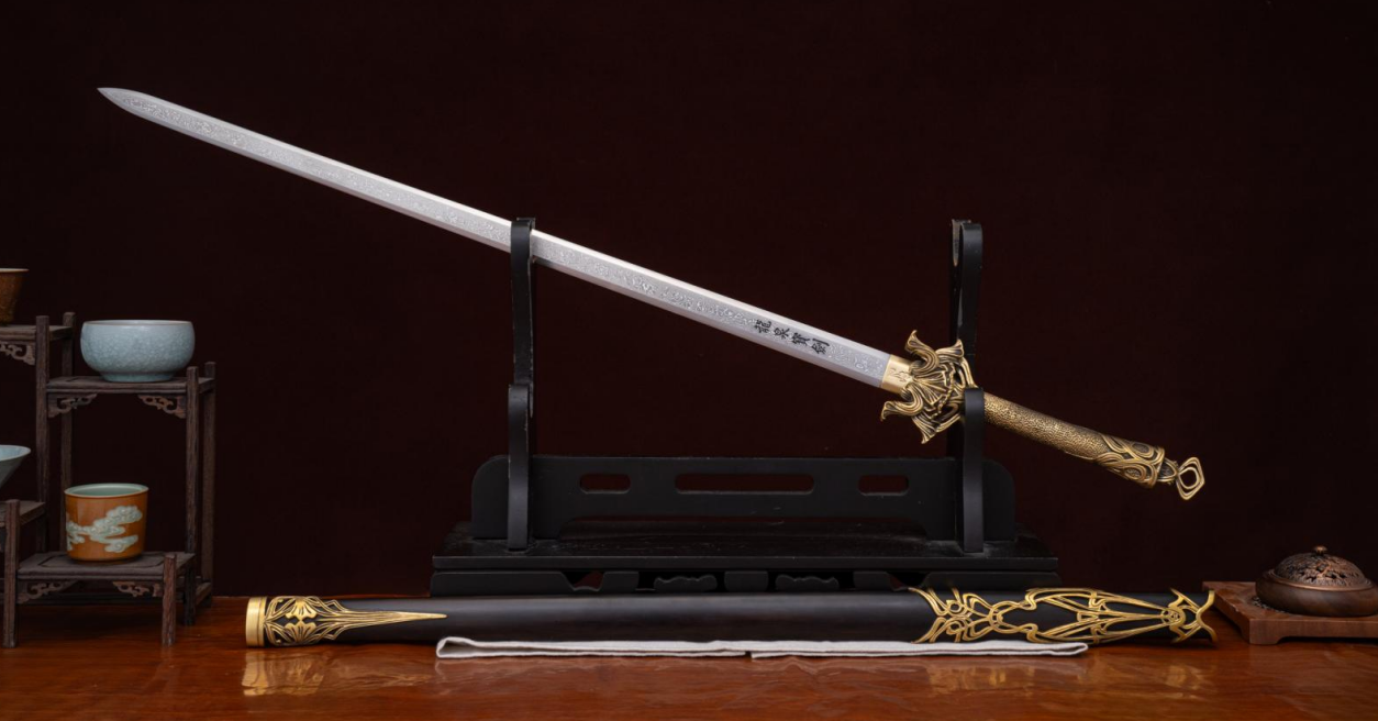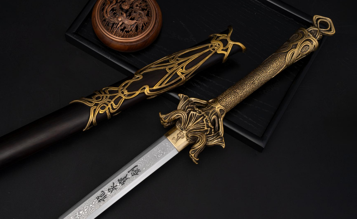综合来看,落尘剑是一件将传统工艺与现代审美结合的作品。它在设计上注重整体的美感,从剑鞘的木材质感,到黄铜装具的古朴色泽,再到剑身的锻造工艺,每个部分都经过了细致的考量。作为一件可以实际把玩的物件,它的结构和用料都体现了扎实的基本功;同时,它也具备不错的装饰性,适合放置在书房、茶室等环境中,为空间增添一份古典雅致的氛围。对于喜欢传统工艺和兵器文化的人来说,这是一把值得细细品味的剑。